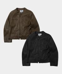 빈티지 피그먼트 워싱 투웨이 넥 버튼 레더 자켓 점퍼 _ 2COLOR