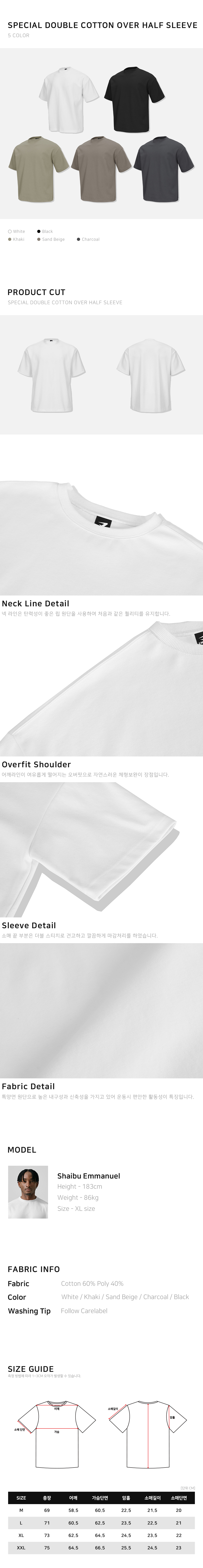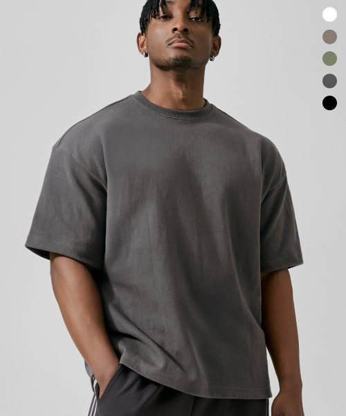 퍼펙트 특양면 오버핏 숄더 2중절개 무지 반팔 티셔츠_7Color