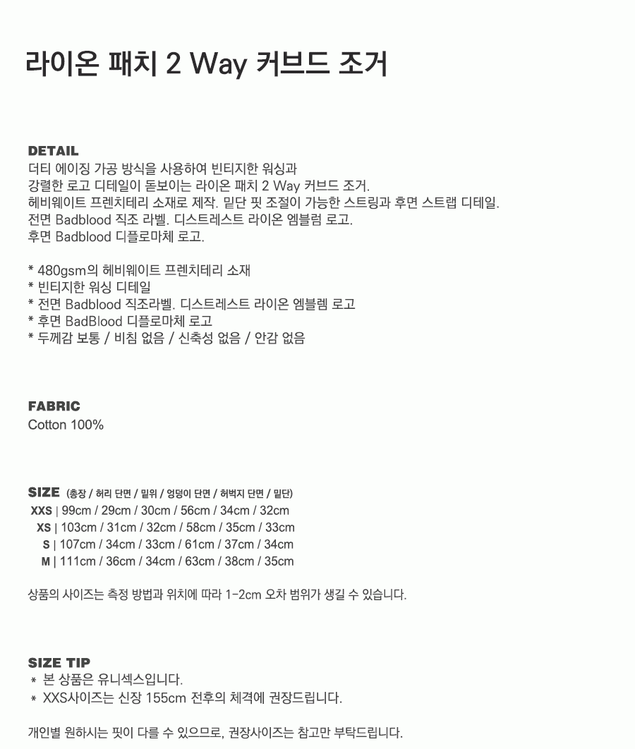 라이온 패치 2 Way 커브드 조거 - 워시드화이트