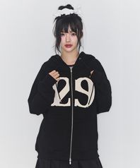 129 로고 패치 후드 집업 블랙