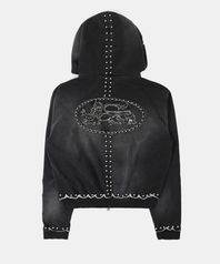 미스틱 스터디드 워시드 후드 집업 - 블랙