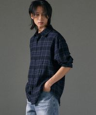 라이트 크링클 코튼 체크 셔츠 [네이비]