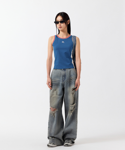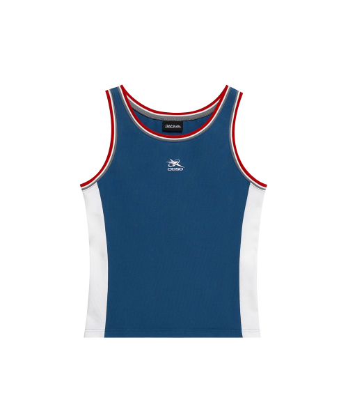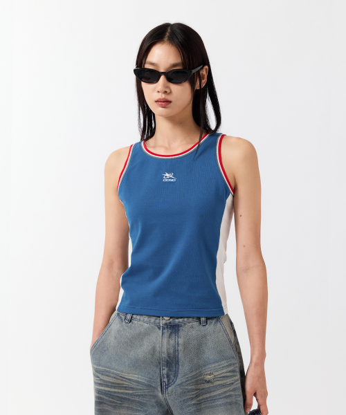 스포티 컬러블록 슬리브리스 - BLUE / WHITE