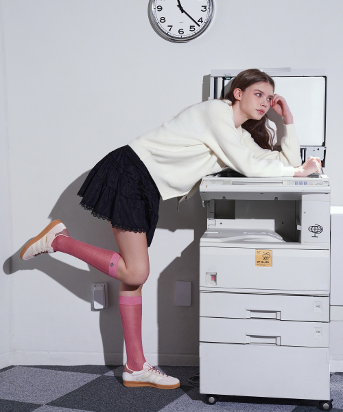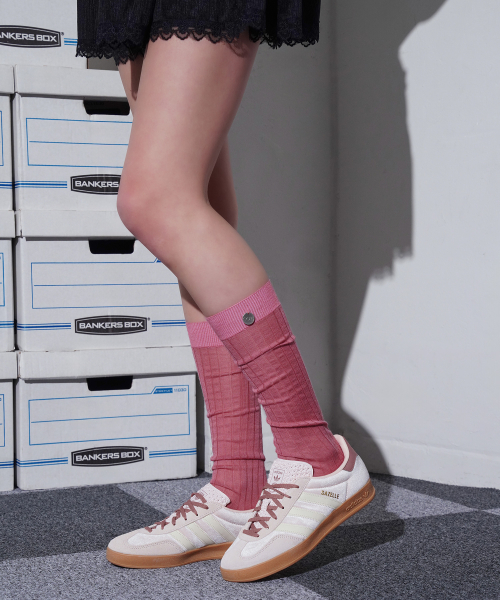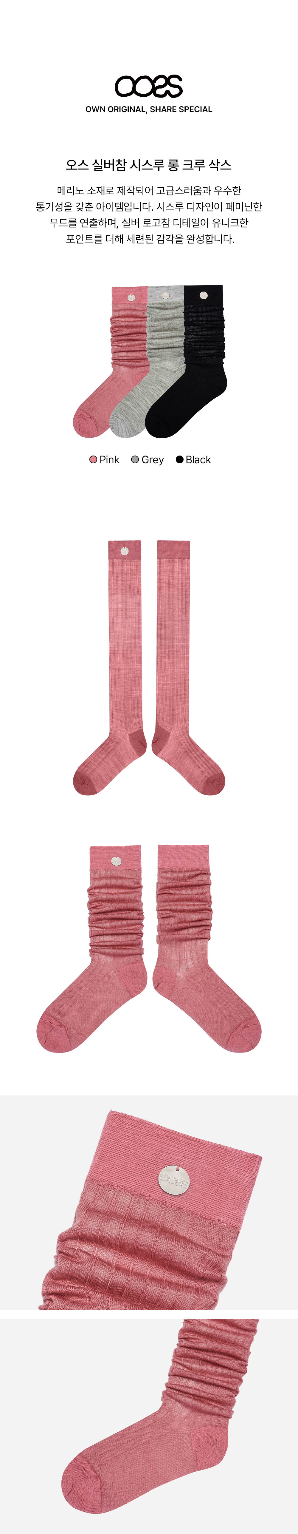 OOSS 실버참 시스루 롱 크루삭스 핑크