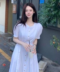 [W][COUTURE]라운드넥 벨티드 오픈 원피스 - 2color