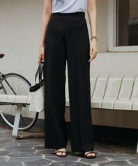 우먼즈 스트레이트 히든 밴딩 슬랙스 [블랙]