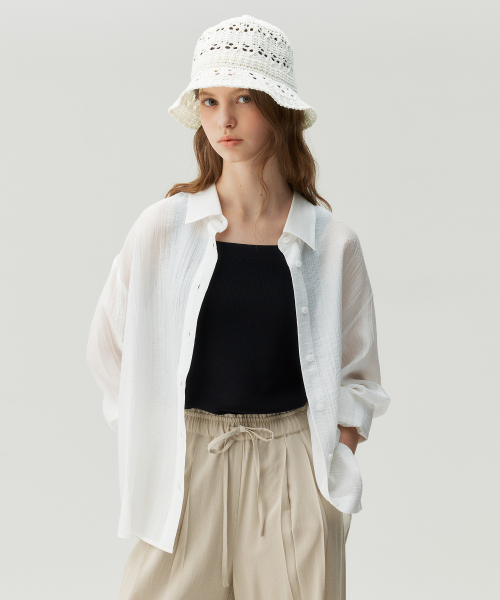 [W]시어 세미 오버핏 투웨이 셔츠 - 2color