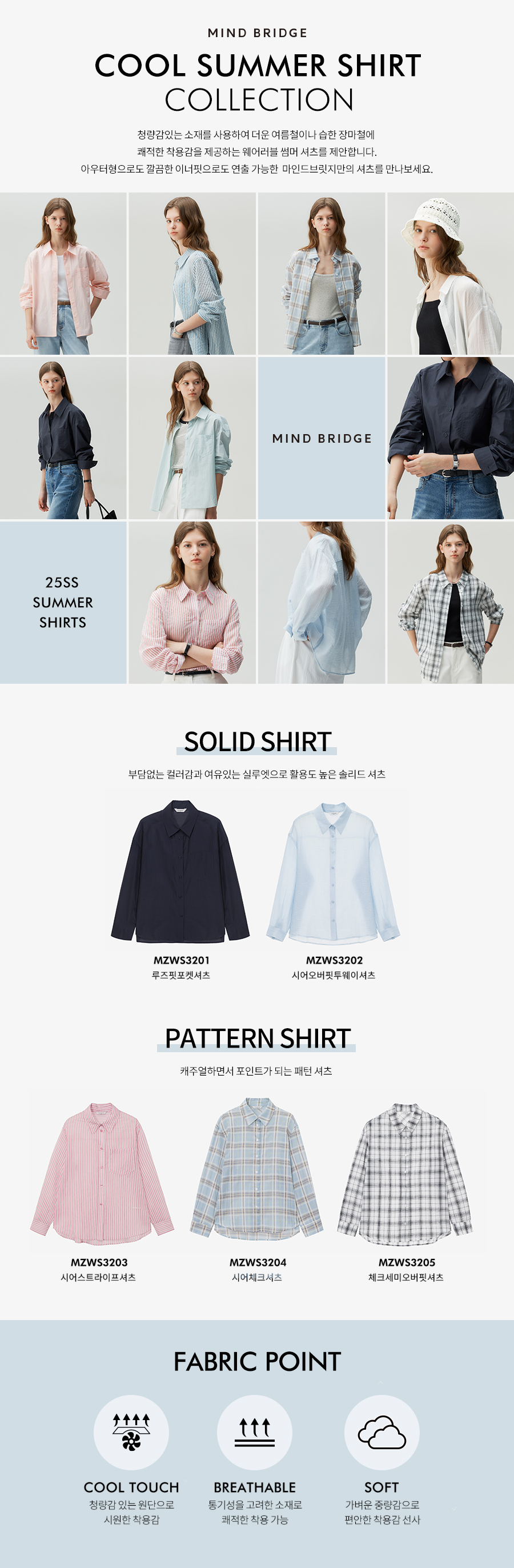 마인드브릿지 우먼(MIND BRIDGE WOMEN)은 ‘OFFICE CORE, TIMELESS MINIMALISM’이라는 키워드를 가지고 미니멀, 스타일리시함과 편안함이 공존한 스타일을 일과 일상의 경계 없는 모던한 컬렉션으로 제안합니다. 옷의 본질에 집중하되 구조적인 실루엣, 텍스처가 돋보이는 소재, 차분하고 정제된 색감의 팔레트를 사용하여 클래식 무드를 현대적인 세련됨으로 표현하였습니다.