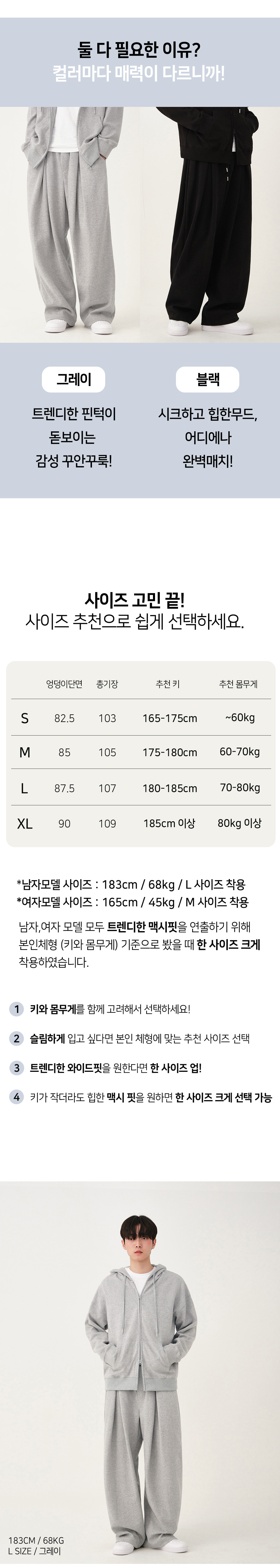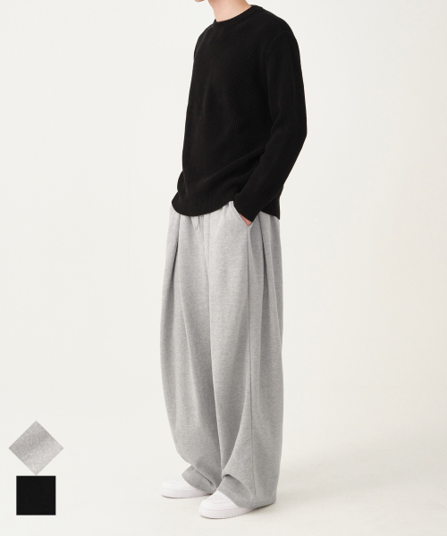 [기모추가] 사이드핀턱 와이드 스웨트팬츠 핀턱 트레이닝바지