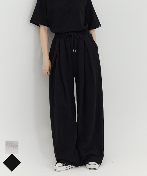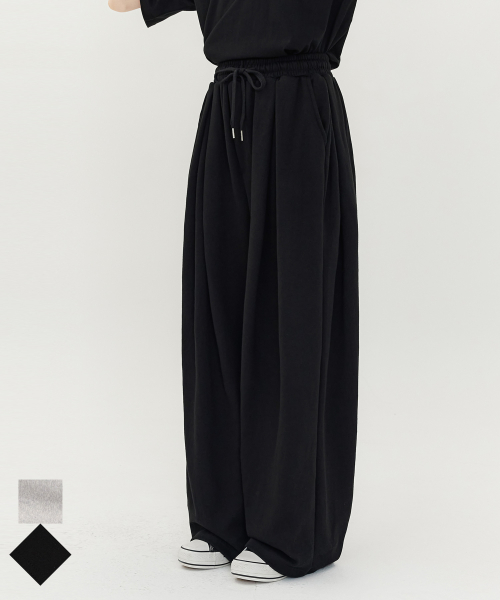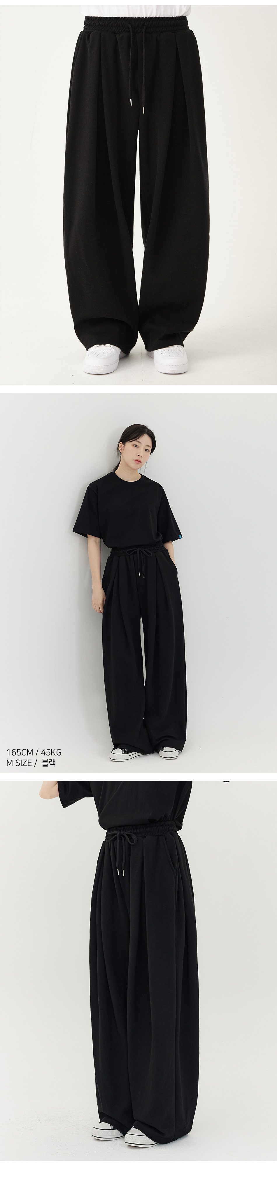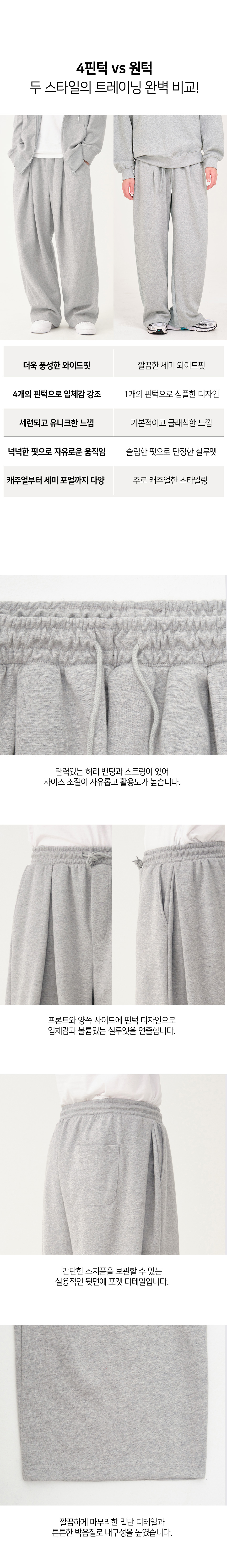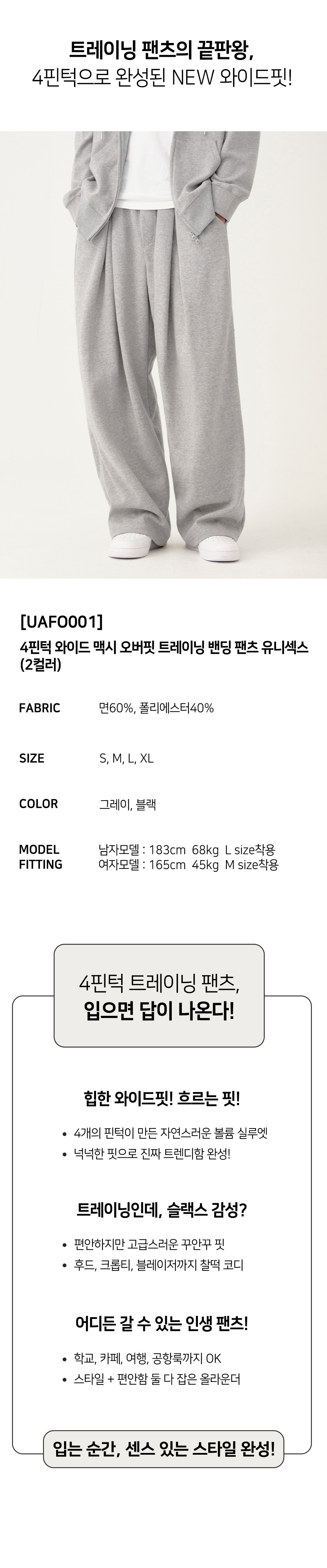 4핀턱 와이드 맥시 오버핏 트레이닝 밴딩 팬츠 유니섹스 (그레이/블랙)