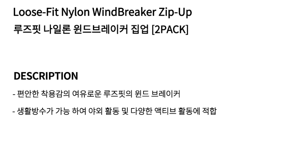 [2PACK] 루즈핏 나일론 바람막이 윈드브레이커 집업 (3COLOR)