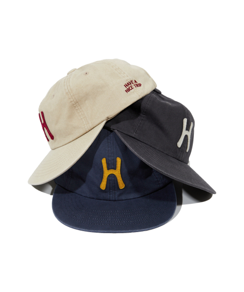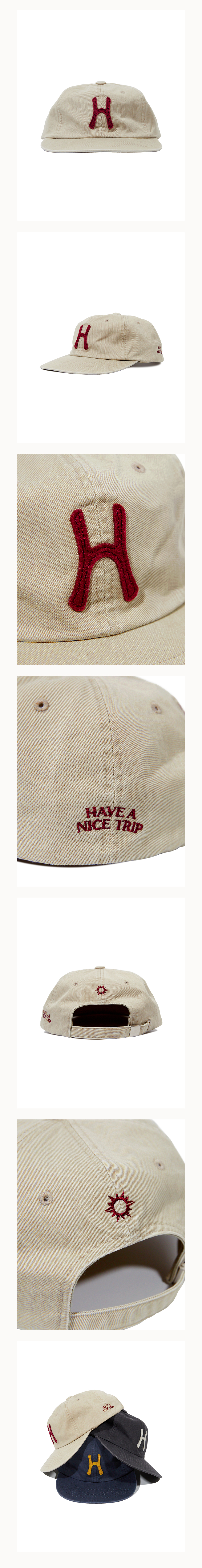 헬로선라이즈 H 로고 그래픽이 아플리케 자수로 들어간 6패널 캡입니다.