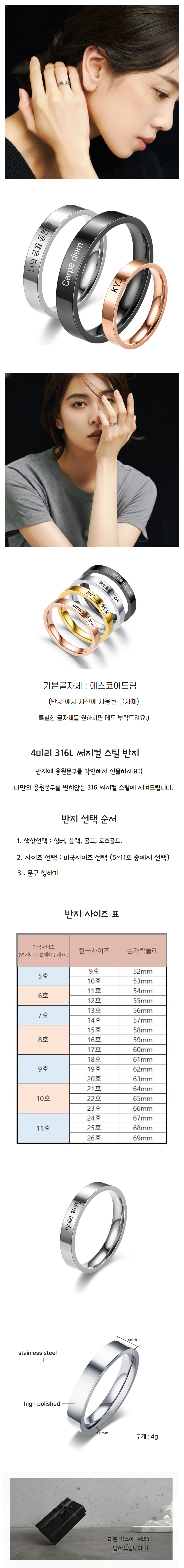 각인반지 써지컬스틸 8컬러 우정 커플 반지