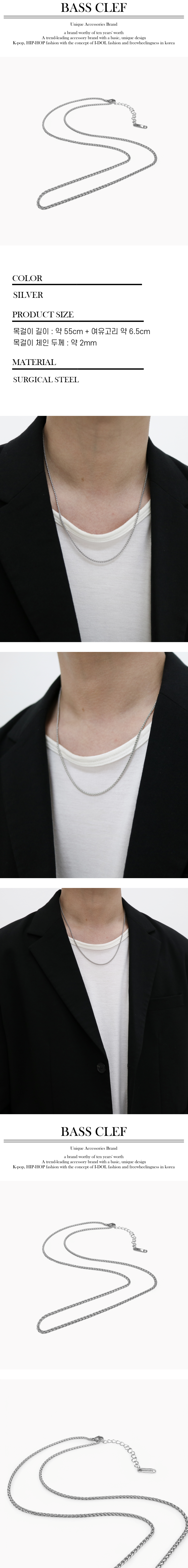 사각 체인 남자 목걸이 써지컬 스틸 CLEF Square Chain NEC