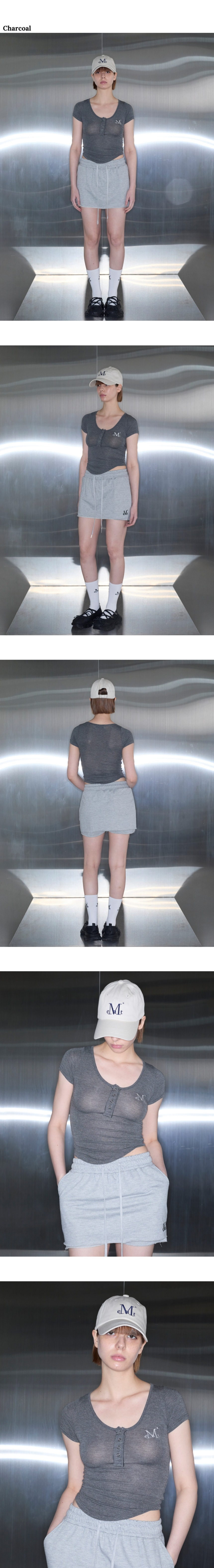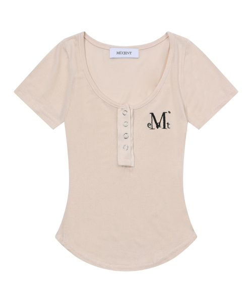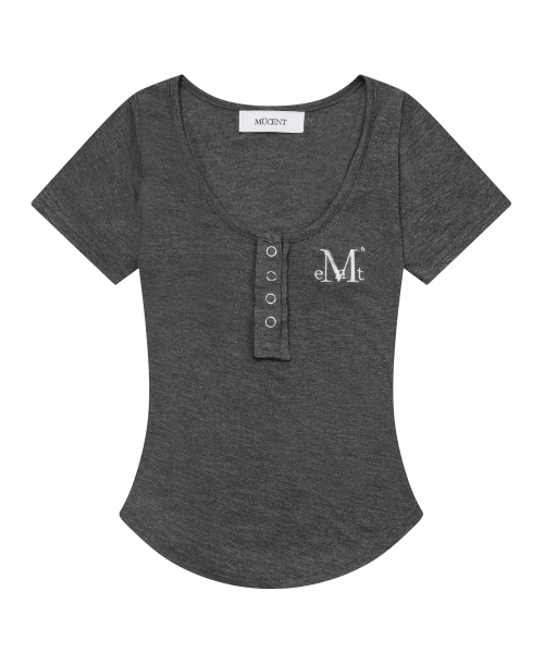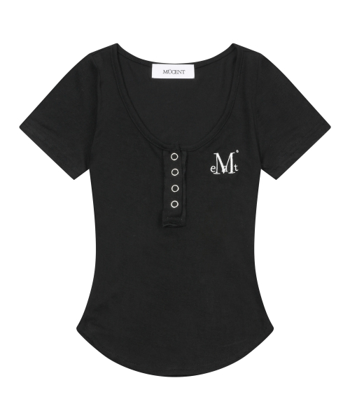 하링 시그니처 로고 스냅 버튼 유넥 굴림 크롭 반팔 티 (5컬러)