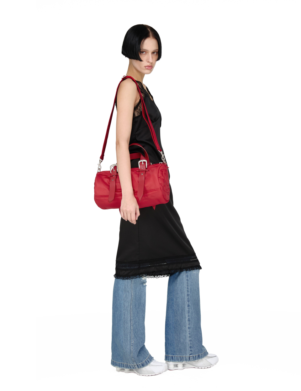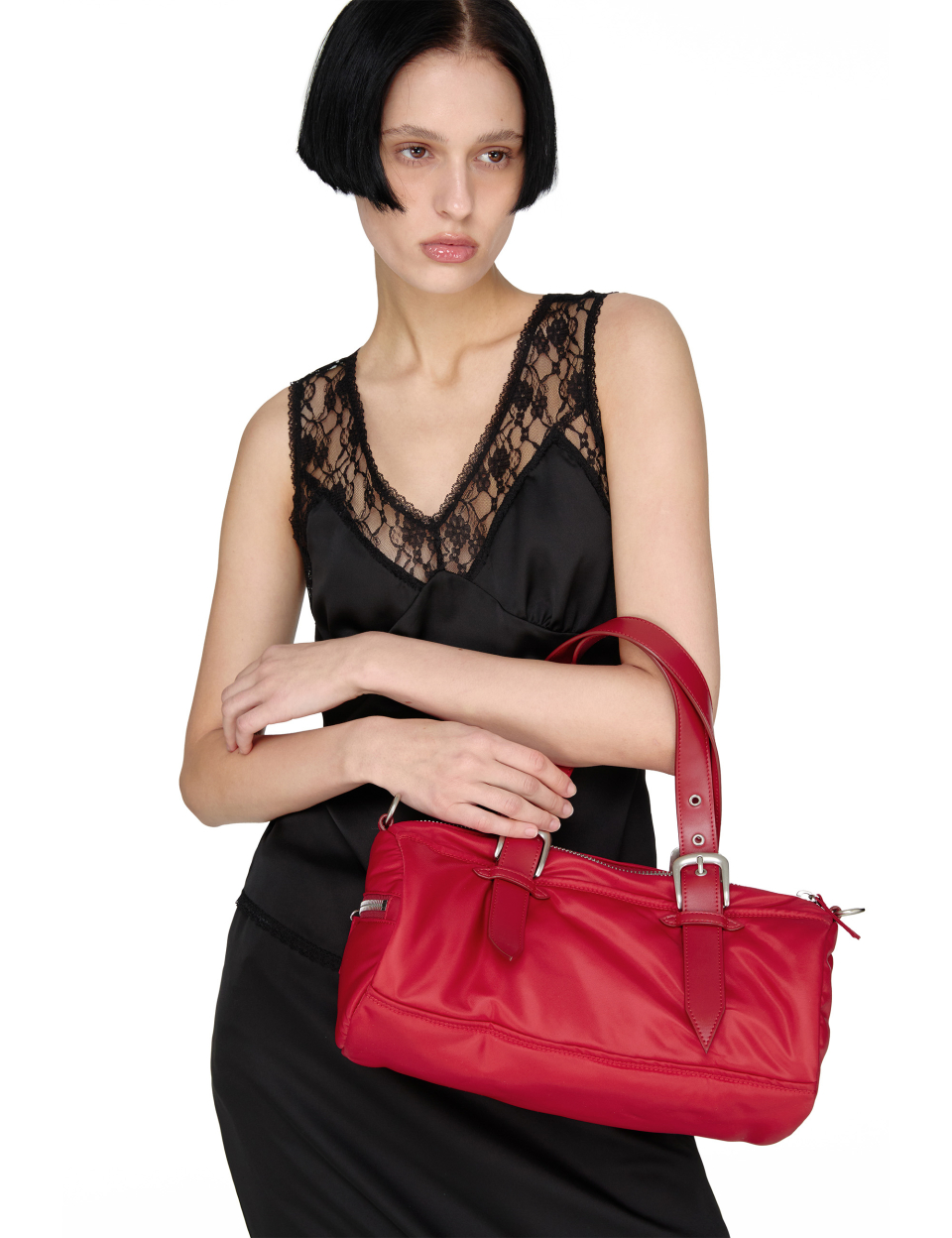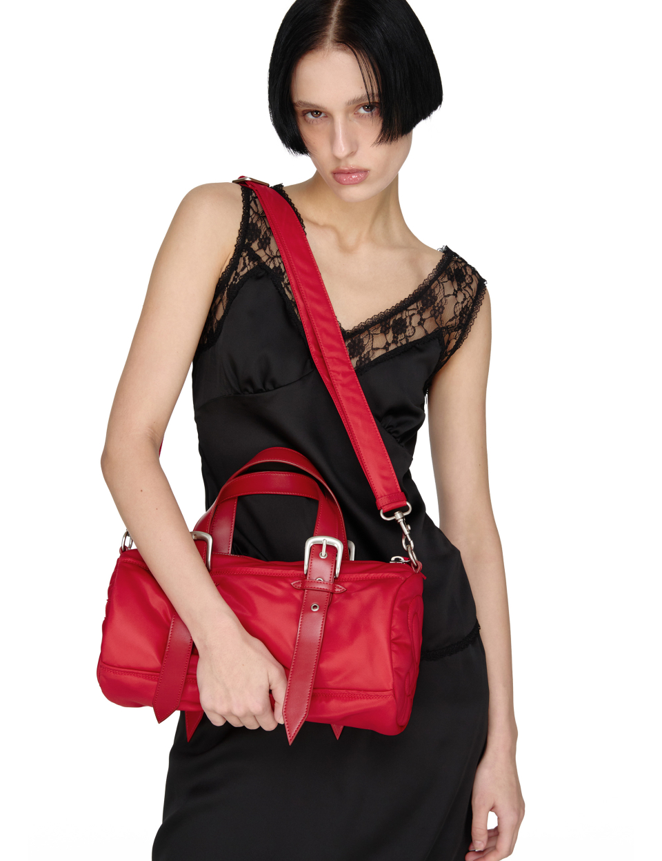 FAUX LEATHER MINI M.O.S BAG, BURGUNDY