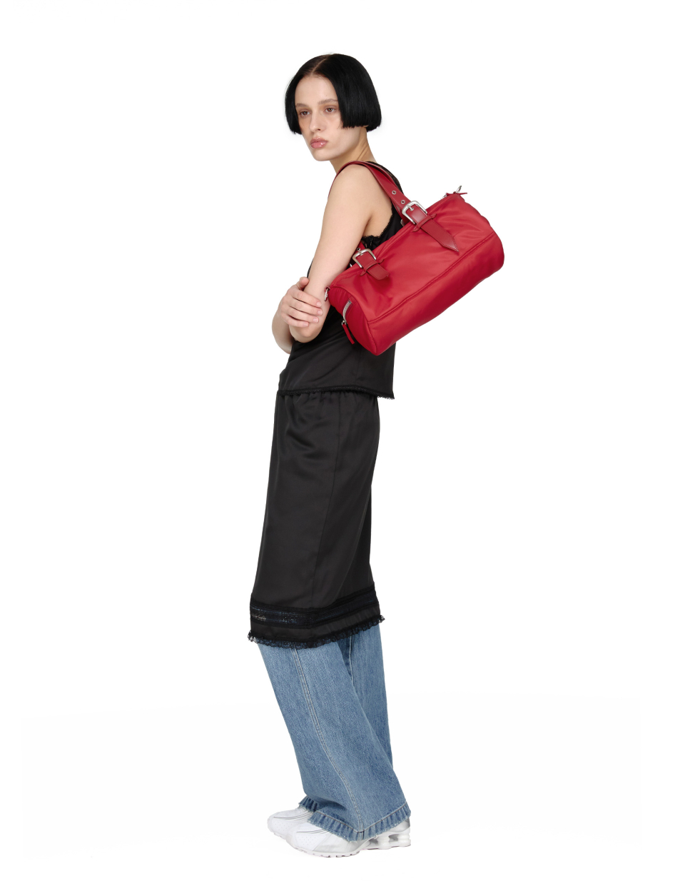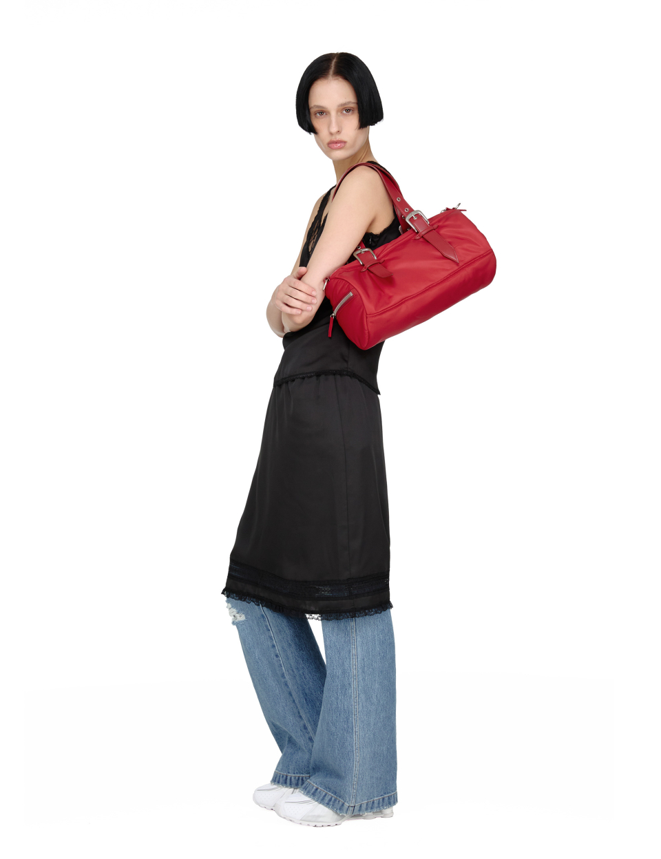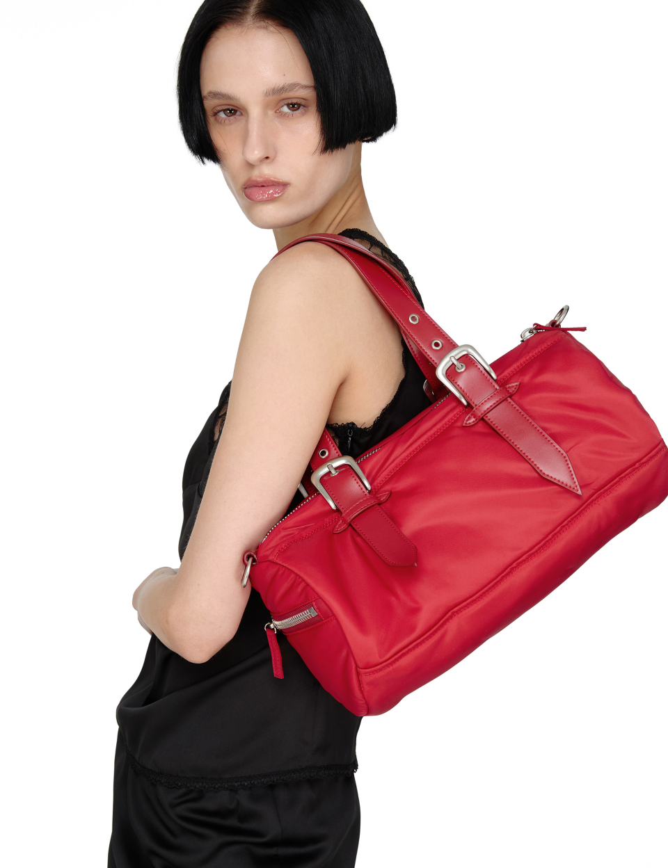 FAUX LEATHER MINI M.O.S BAG, BURGUNDY