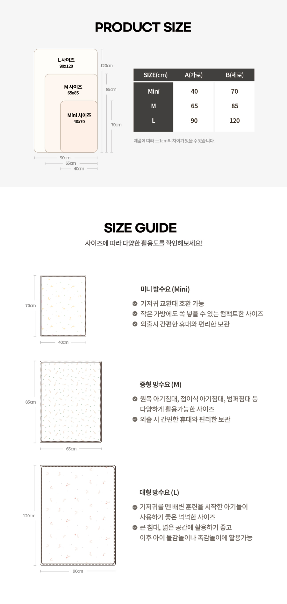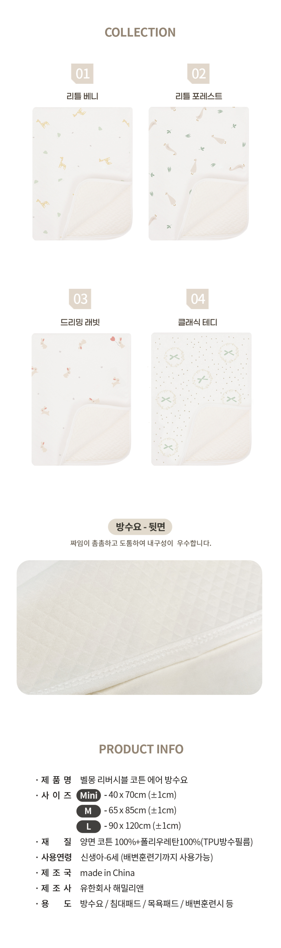 양면 코튼 신생아 방수패드 방수요 Mini/M/L