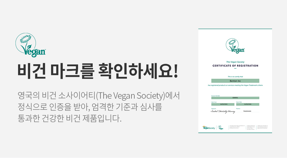 벤튼(BENTON)은 유해 성분을 원천 배제하며, 고품질과 합리적 가격의 건강한 화장품을 만드는 브랜드입니다.