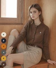여성 레더 버튼 롤드 엣지 모헤어 가디건 6Color TK103