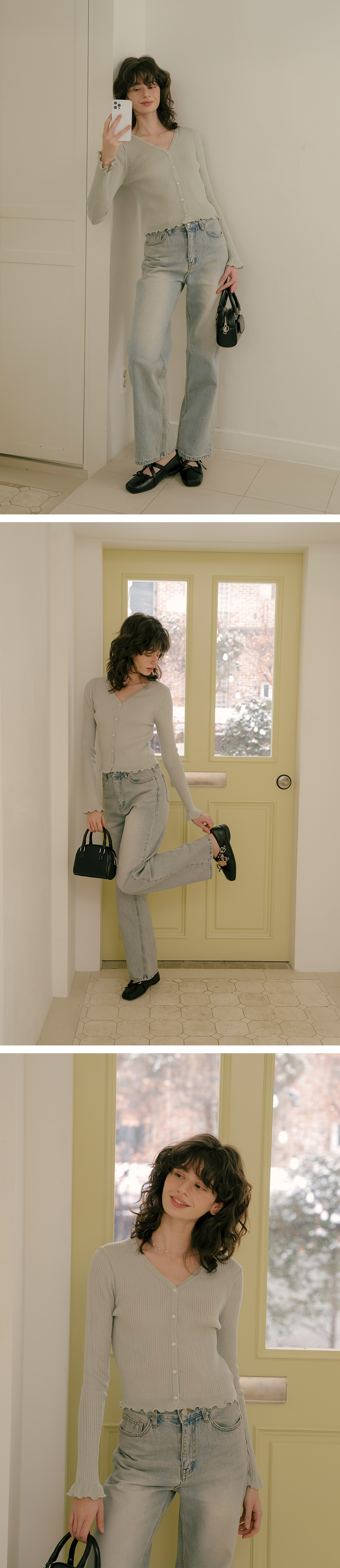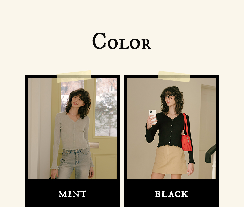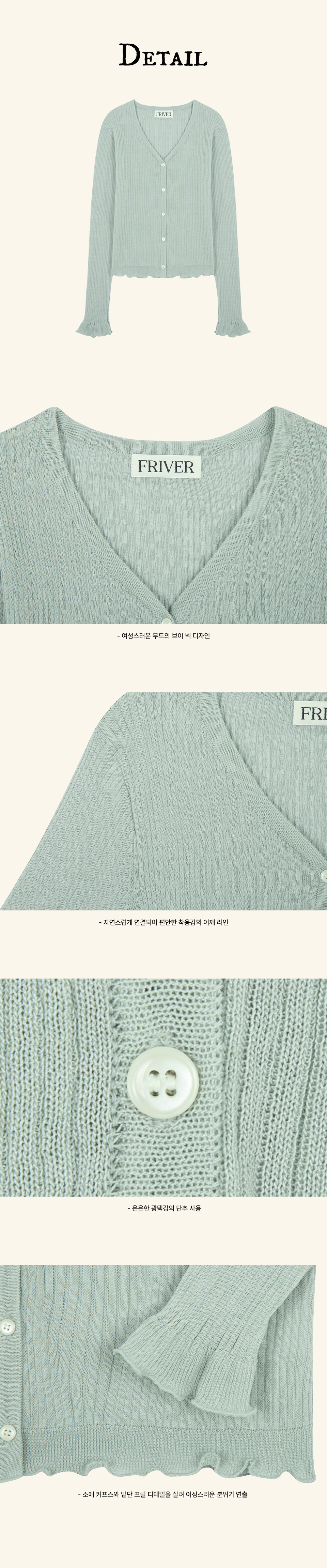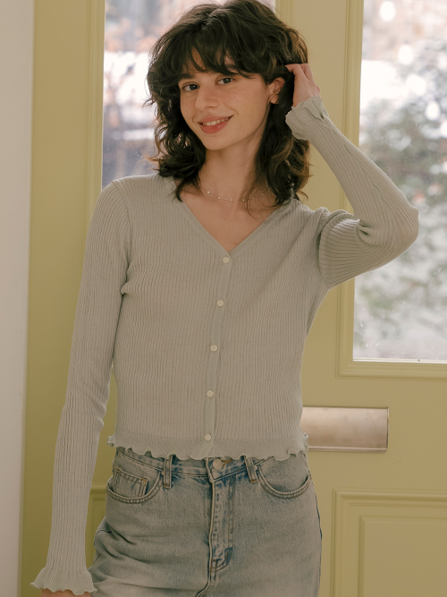 V-neck frill ribbed knit cardigan_Mint