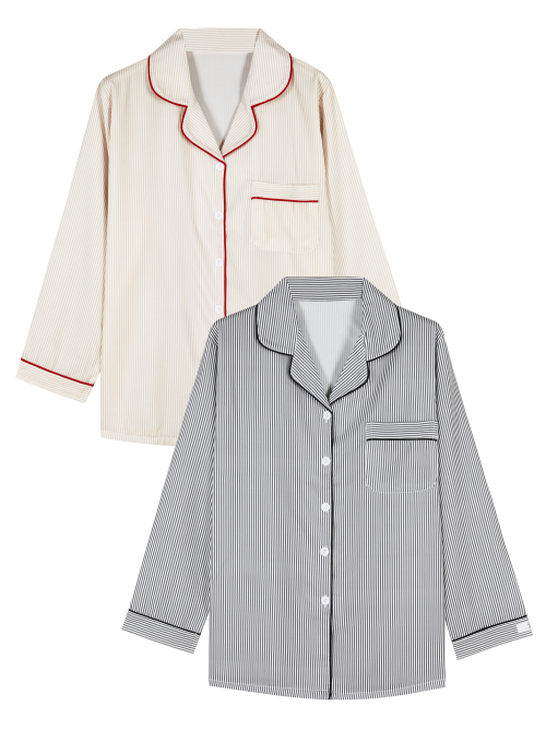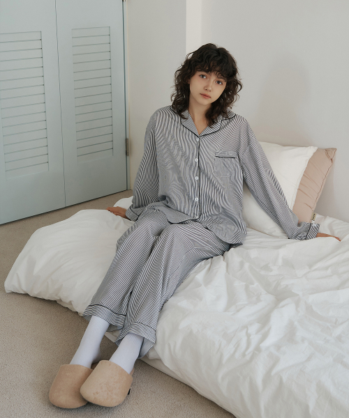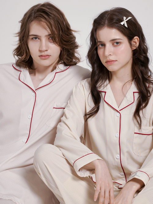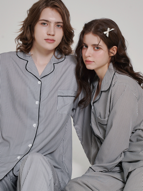 [2PACK] 커플용 루나 스트라이프 긴팔 카라 잠옷 상하의 세트