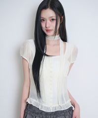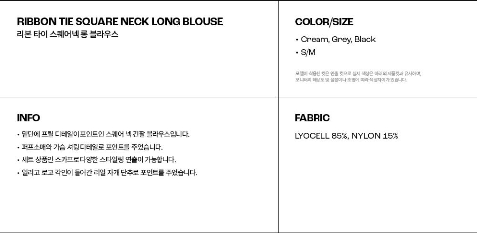 리본 타이 스퀘어넥 블라우스 크림