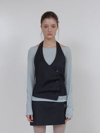 PIN STRIPE LAYERED VEST (BLACK)