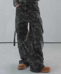 Ribbon Wide Cargo Pants CAMO