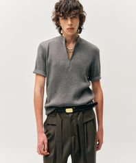 리브드 집업 하프 니트 (그레이)