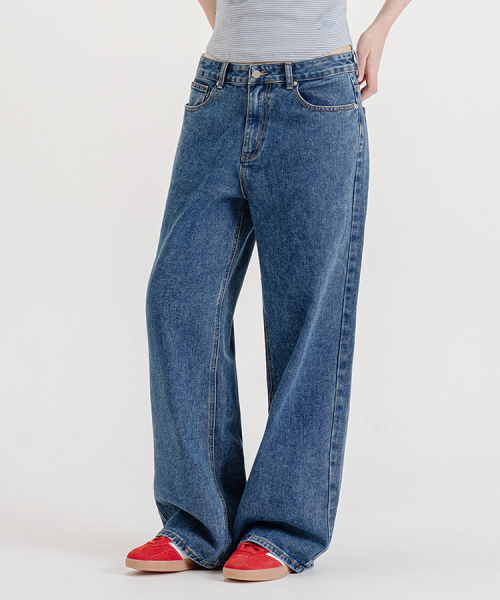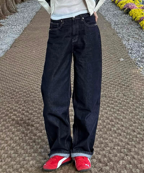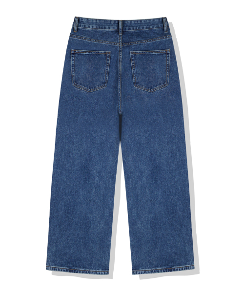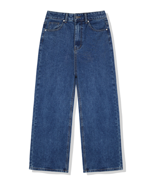 우먼즈 세미 와이드 워싱 데님팬츠[딥블루인디고]