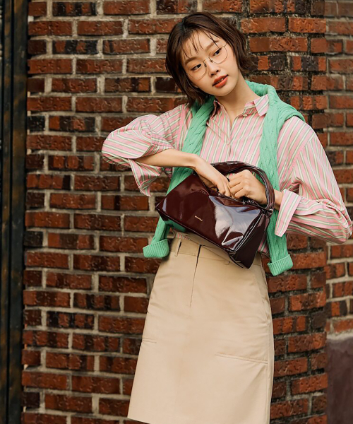 반짝이는 광택과 도톰한 형태가 매력적인 윈디 토트백입니다. 미니멀한 디자인이지만 은은한 광택과 귀여운 볼륨이 포인트가 되는 스타일입니다. 작지도 크지도 않은 딱 적당한 사이즈로 실용적인 수납이 가능하며, 지퍼 여밈으로 편리성을 더했습니다. 가볍게 토트백으로 들거나, 짧은 숄더백으로 발랄하게도 연출할 수 있습니다.