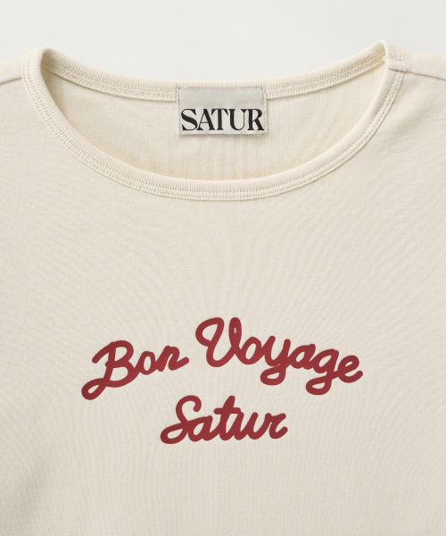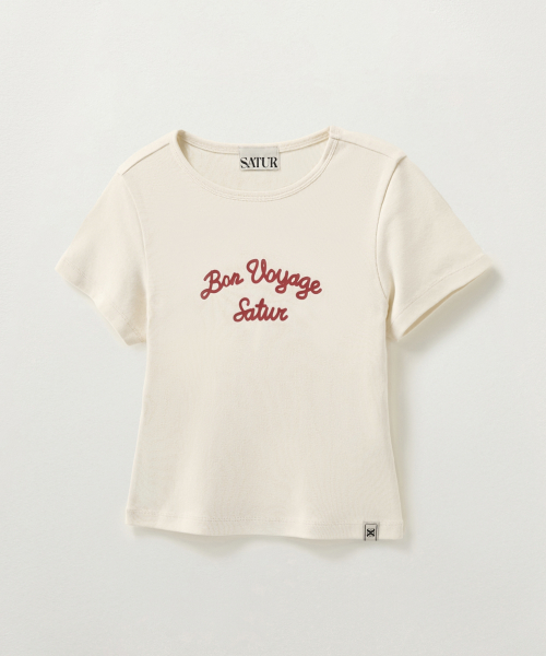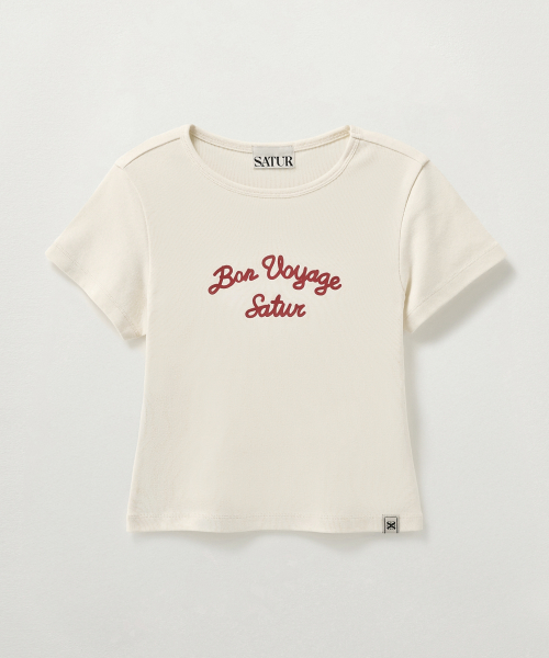 (W) 본 보야지 슬림 핏 크롭 티셔츠 크림