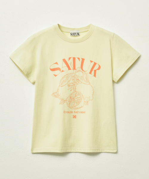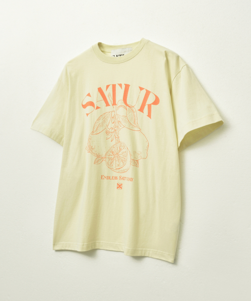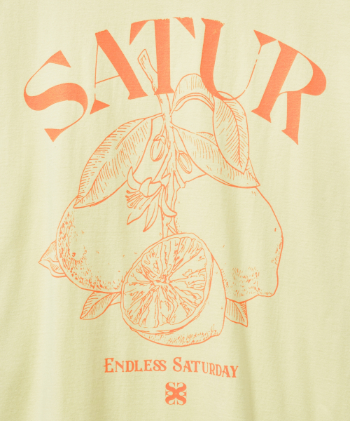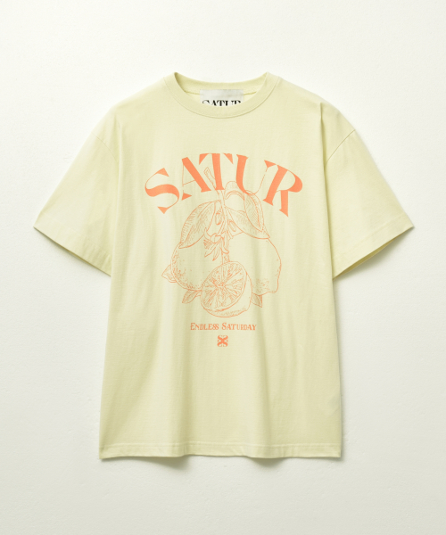 세터데이 레트로 무드 그래픽 반팔 티셔츠 네온 옐로우