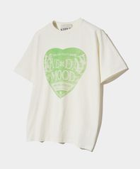세터데이 레트로 무드 그래픽 반팔 티셔츠 크림 그린