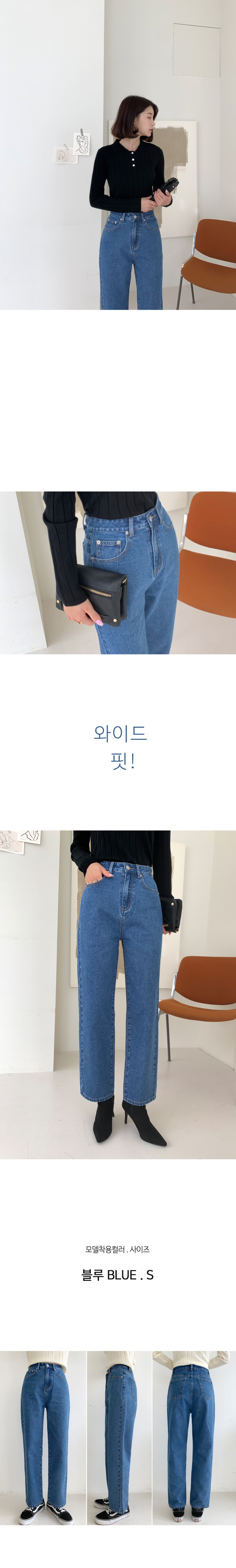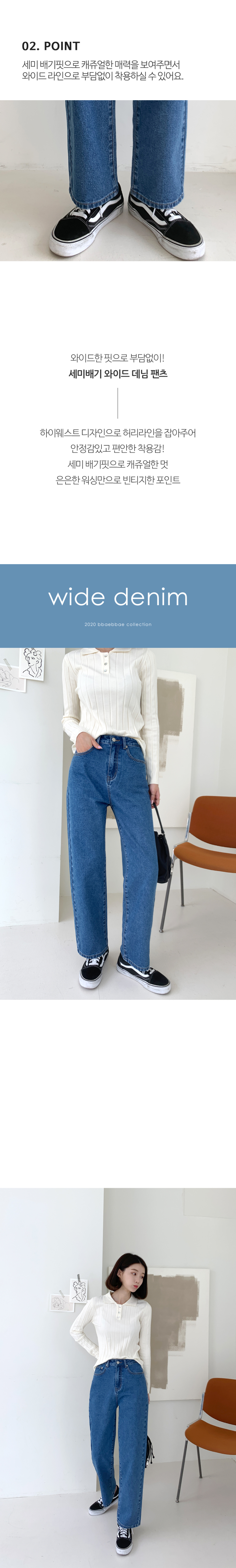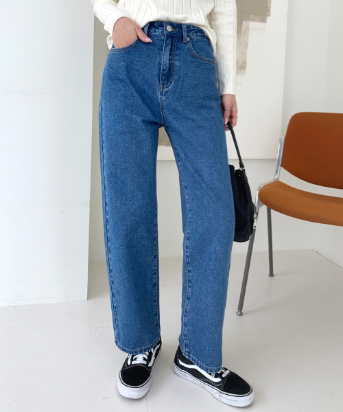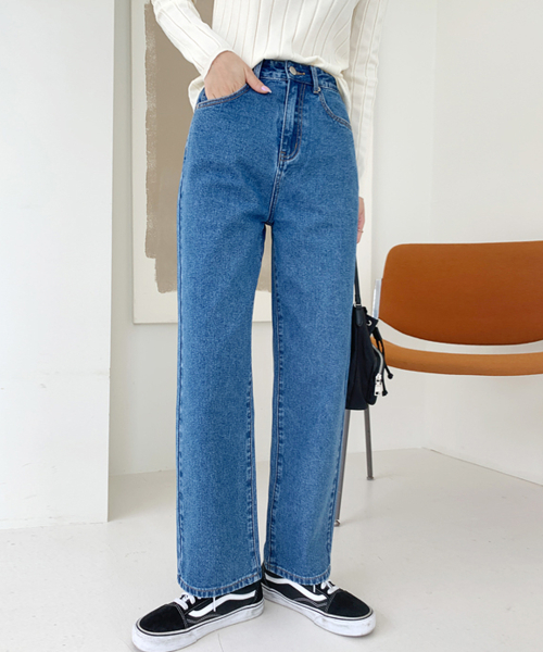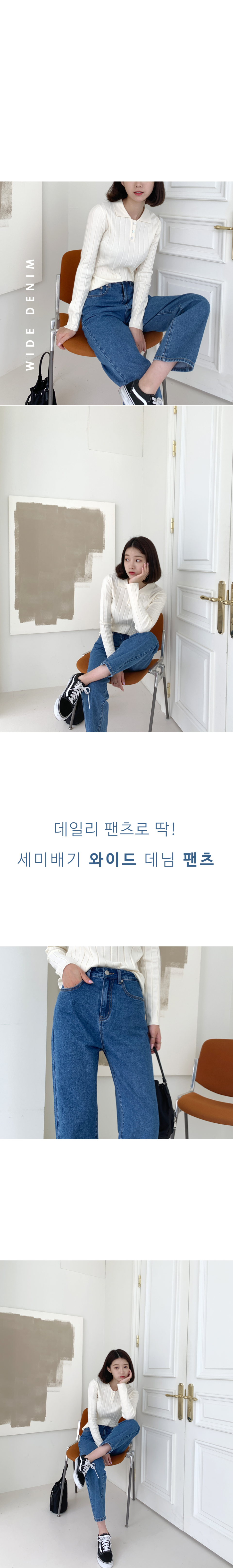 하이웨스트 세미배기 와이드 데님팬츠