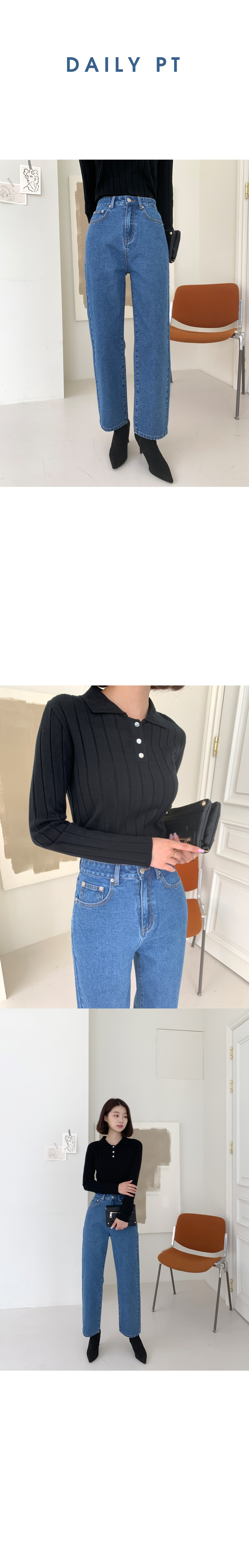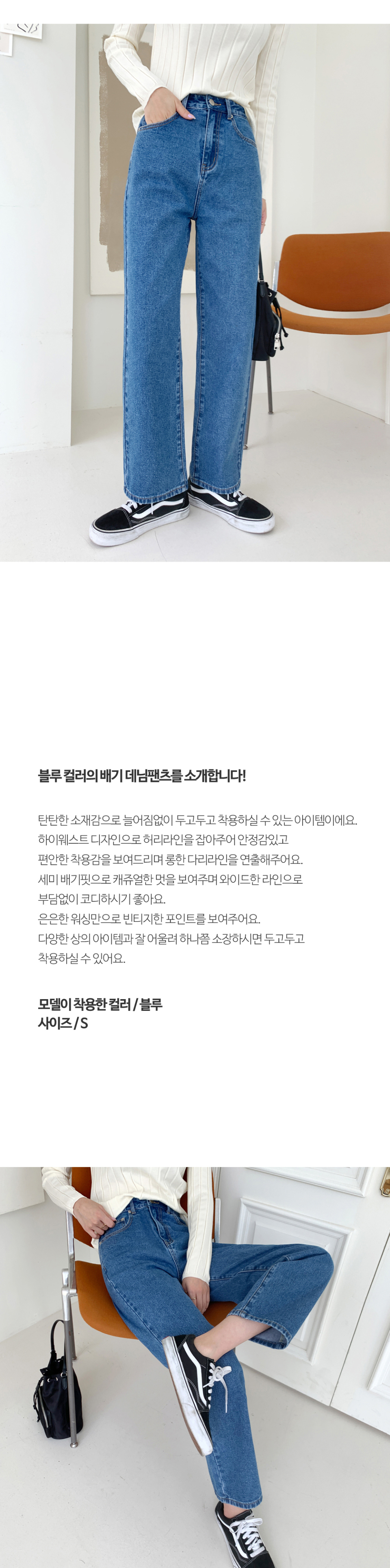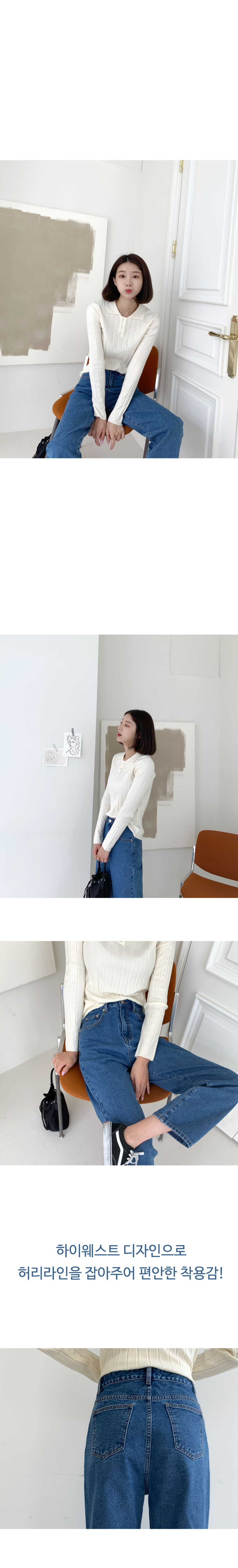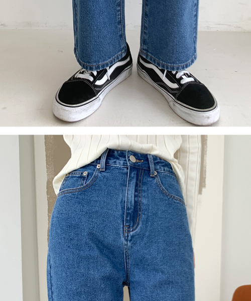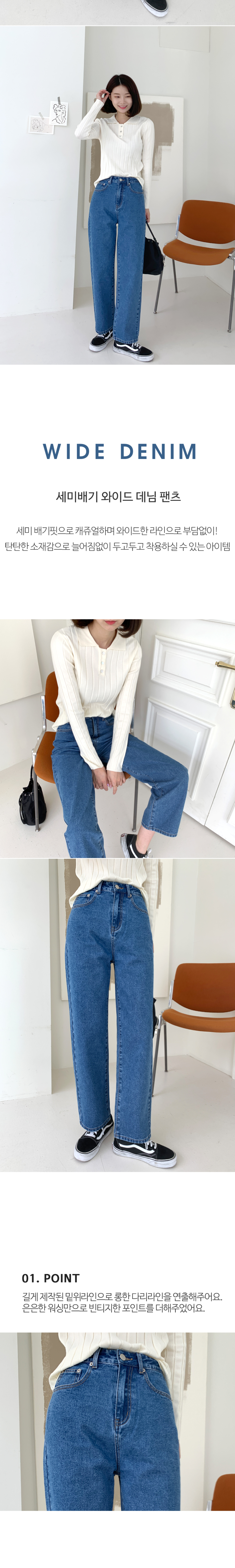 하이웨스트 세미배기 와이드 데님팬츠