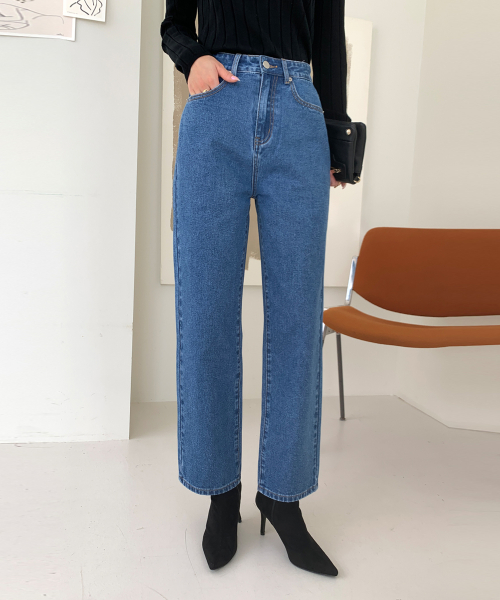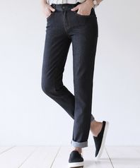 허리텐션 슬림 일자 크롭 스판 데님팬츠