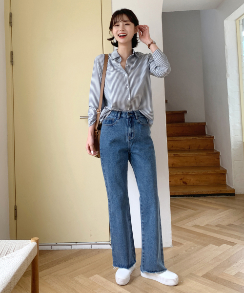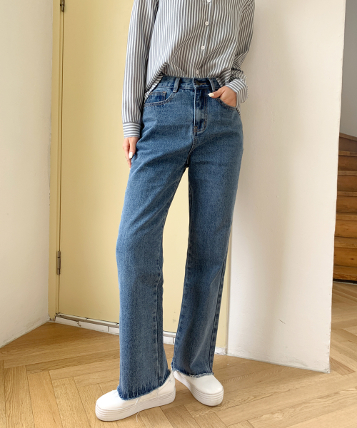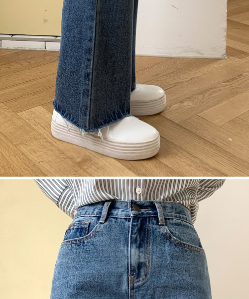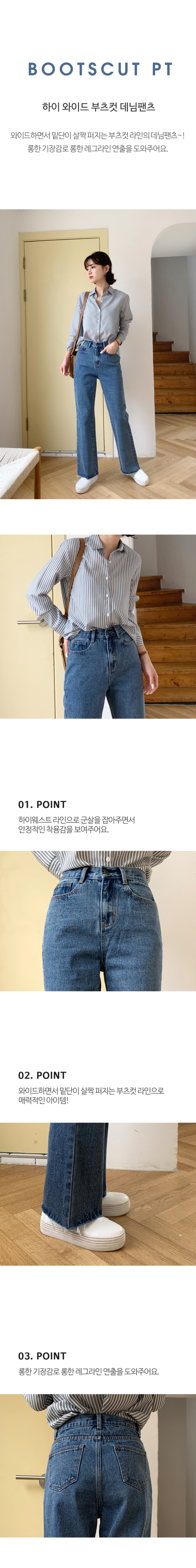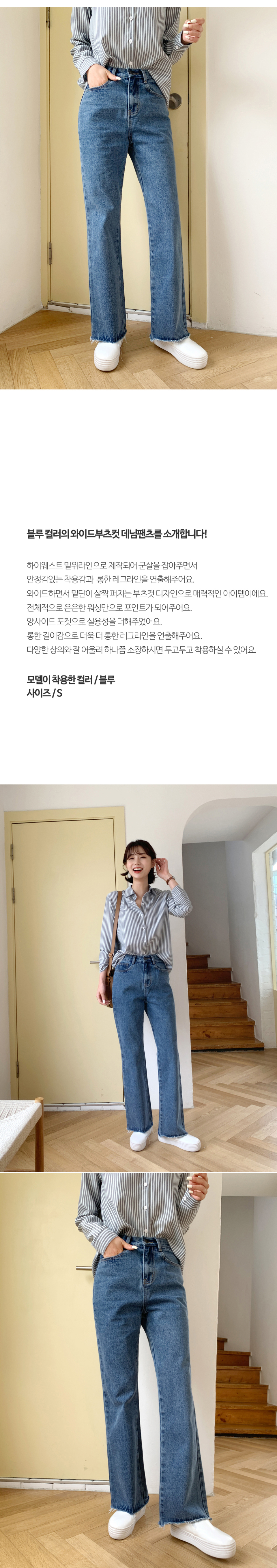 하이웨스트 롱 와이드 부츠컷 데님팬츠