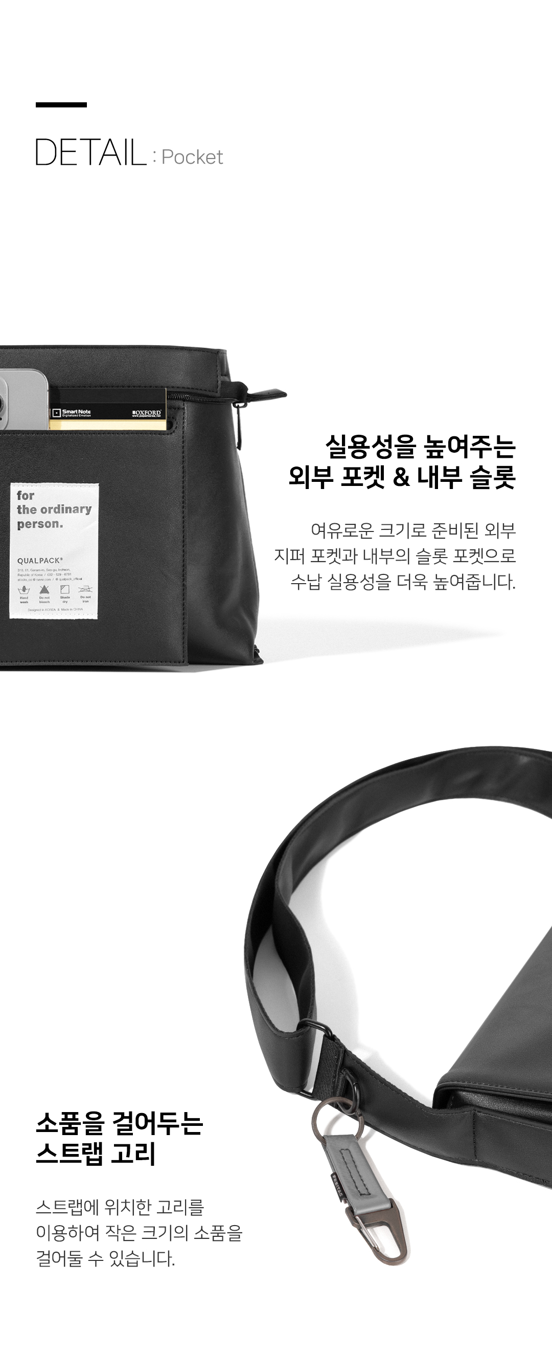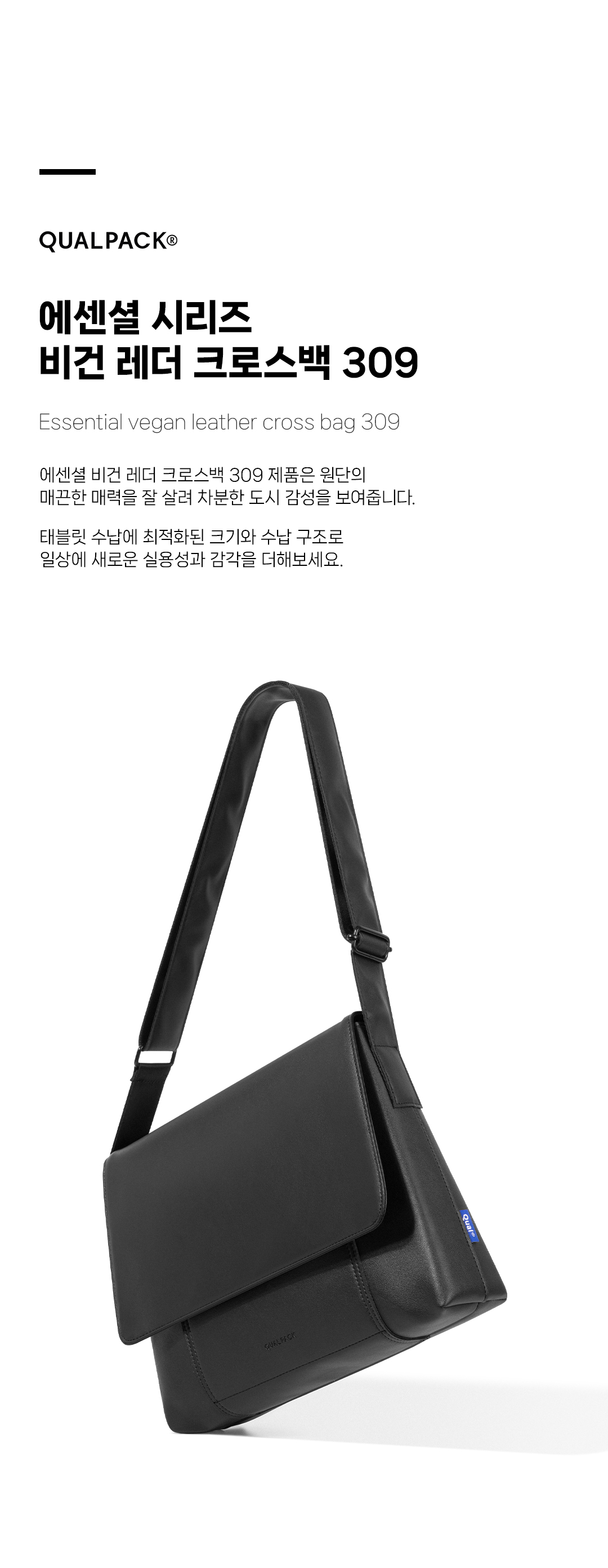 퀄팩(QUALPACK)은 특별한 순간보다 평범하고 익숙한 하루에 더 가까이 다가서며, 익숙함 속의 편안함과 실용성을 담아내는 데일리 백 브랜드입니다.
