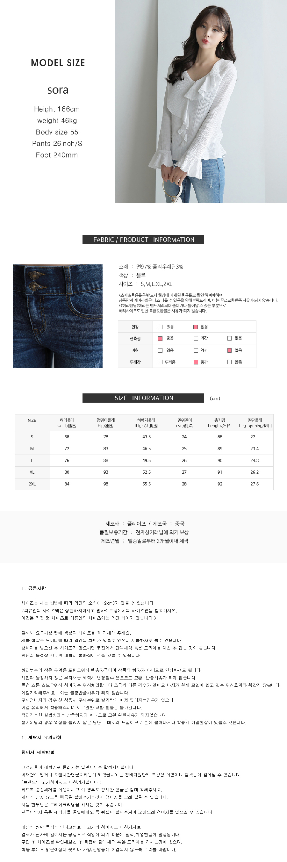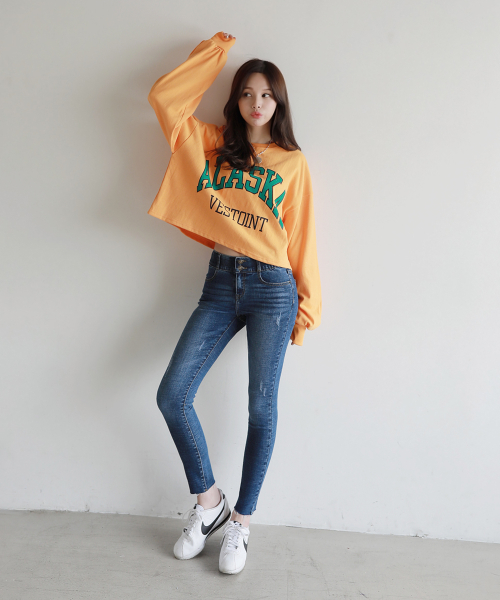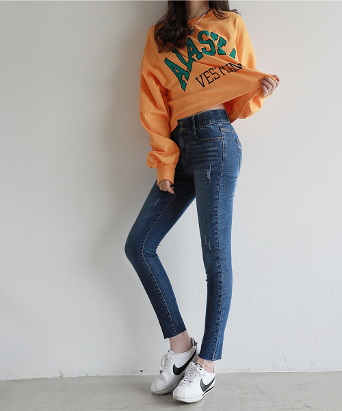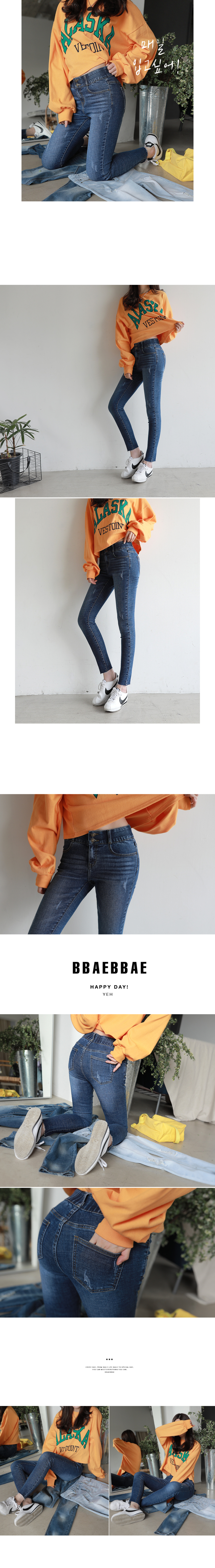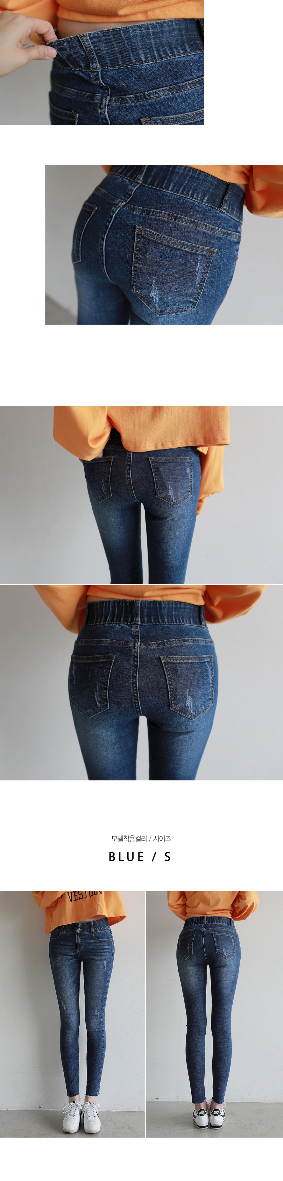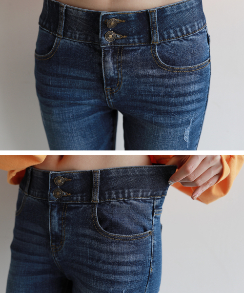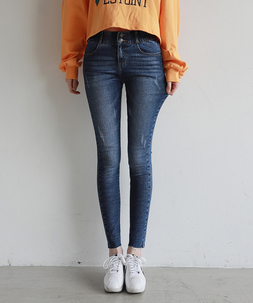 투버튼 속밴딩 스키니진