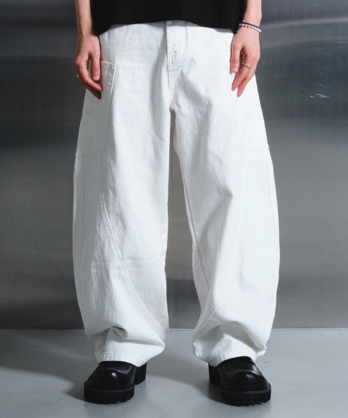 커브드 포켓 데님 와이드 팬츠(화이트)
