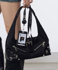 - 비건 레더원단을 사용하여 제작된 MOTO 모티브의 바게트 숄더백 입니다.
