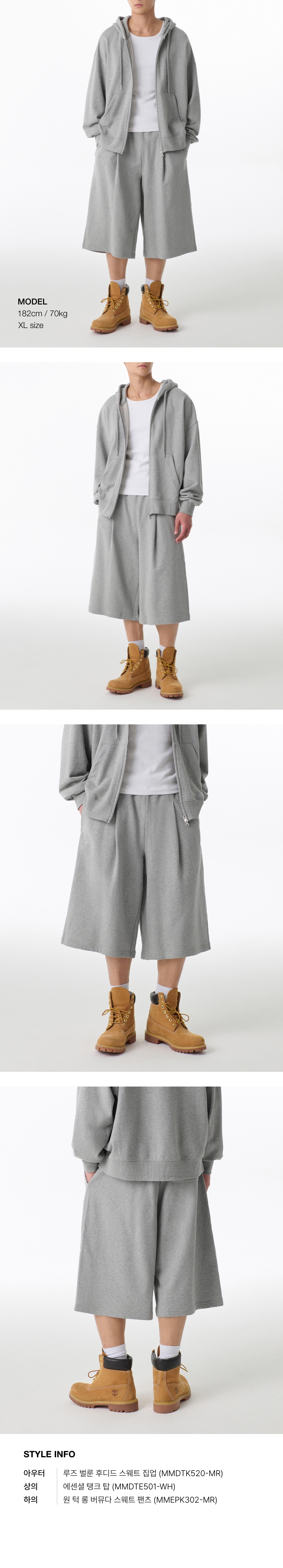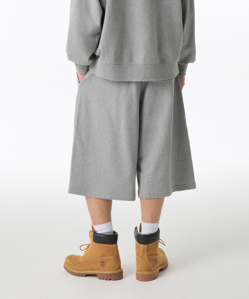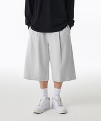 원 턱 롱 버뮤다 스웨트 팬츠 [멜란지 라이트 그레이]