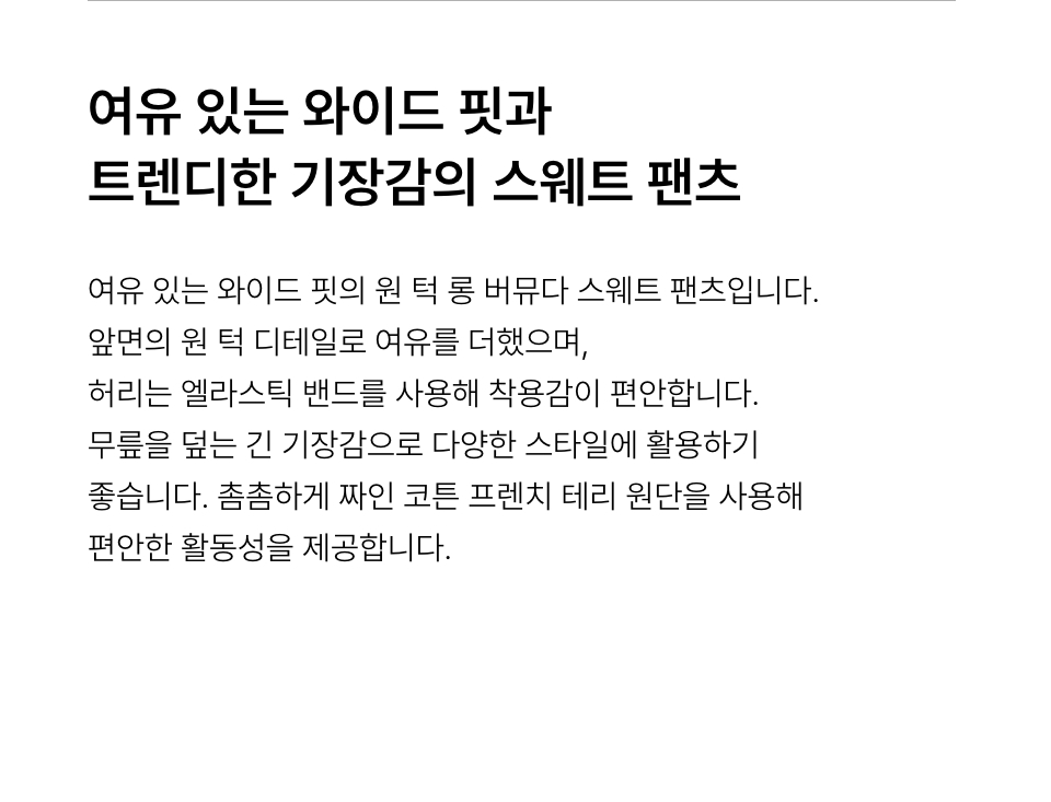 원 턱 롱 버뮤다 스웨트 팬츠 [블랙]