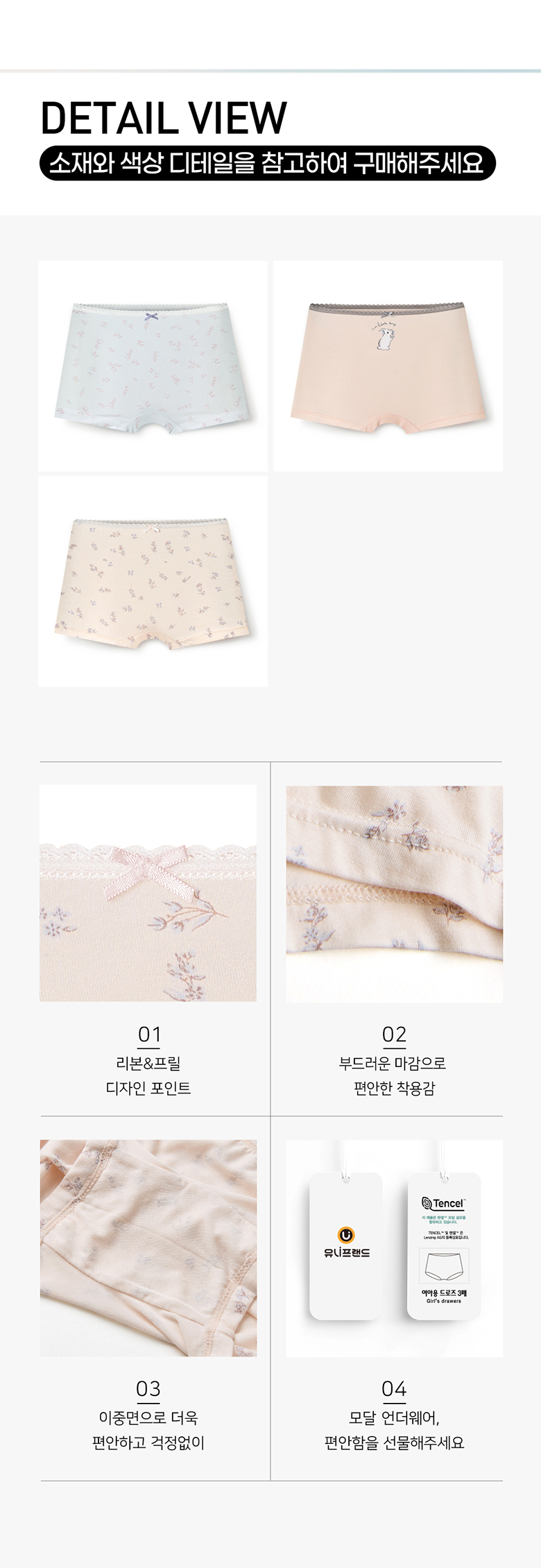 2025여아동 가든래빗 모달 드로즈 3종 PACK