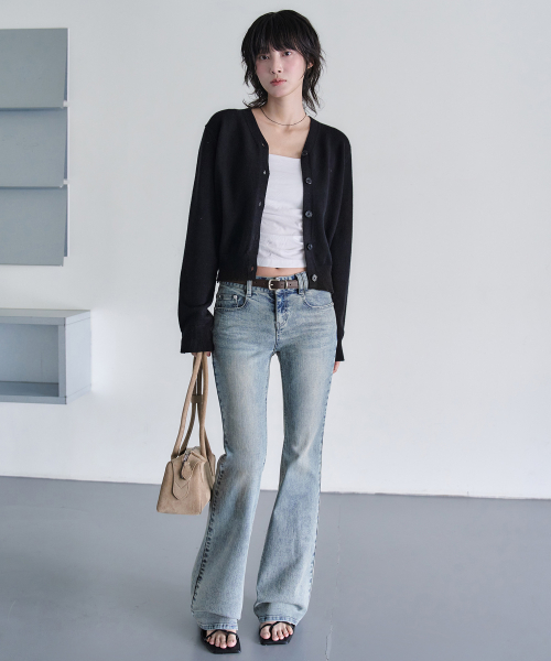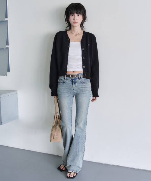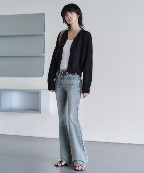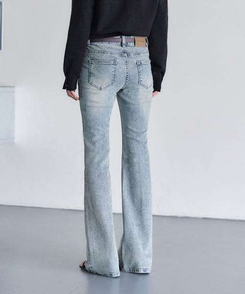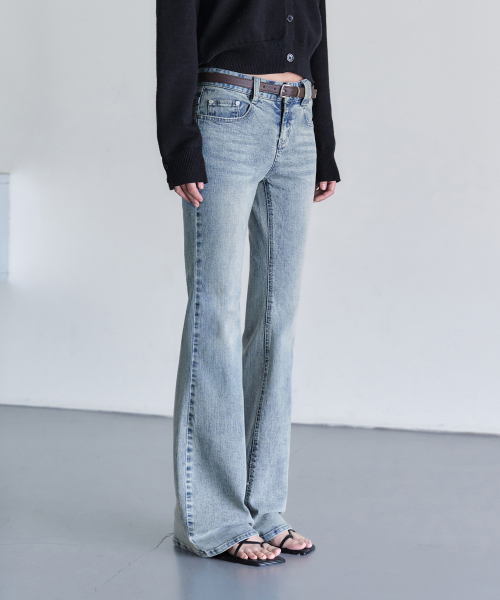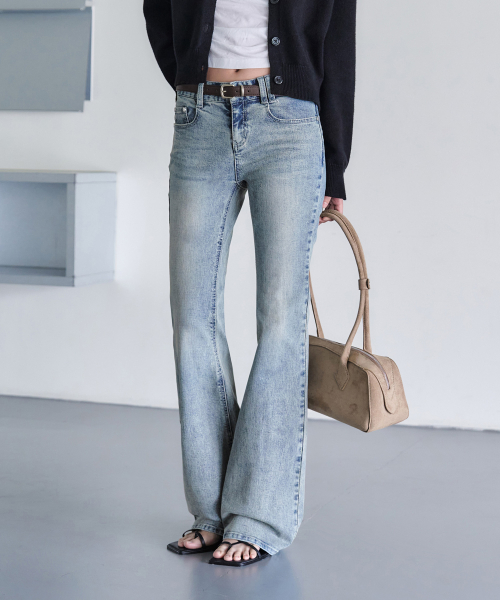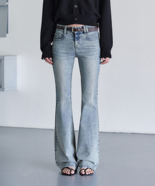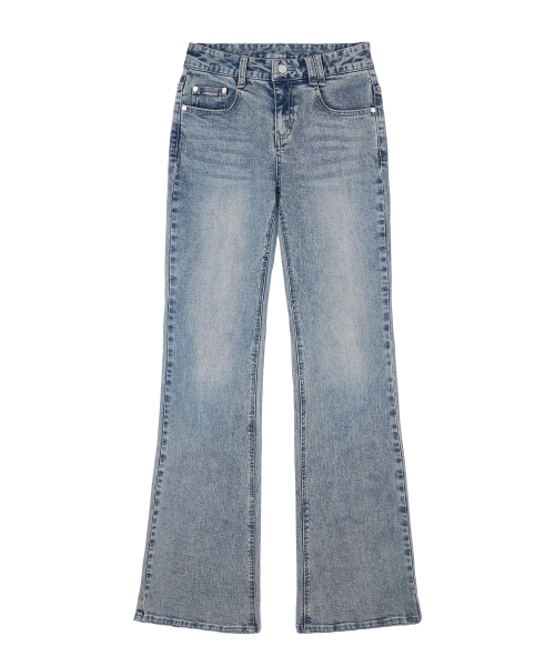 우먼즈 로 라이즈 슬림 플레어 데님 팬츠 [라이트 인디고]