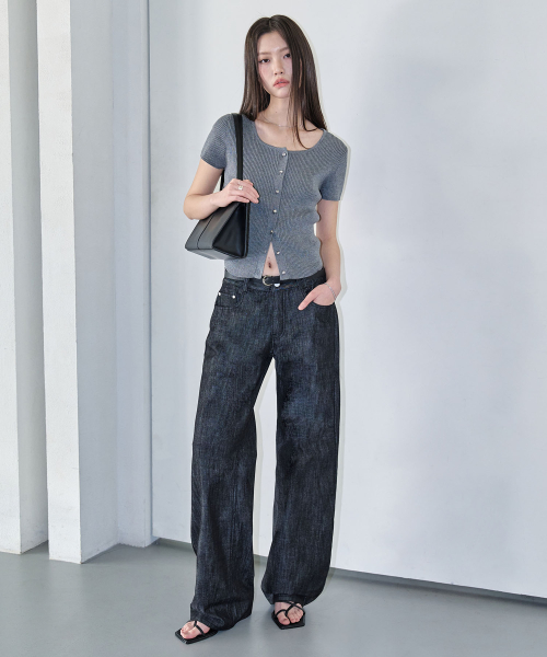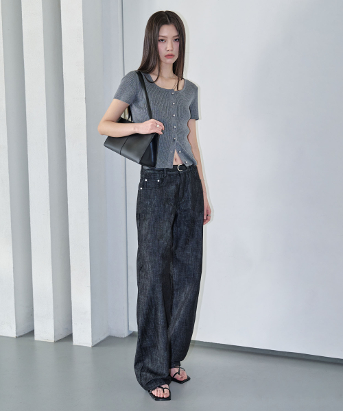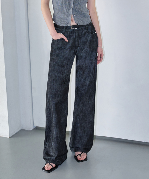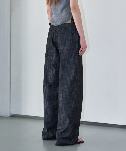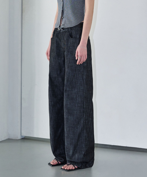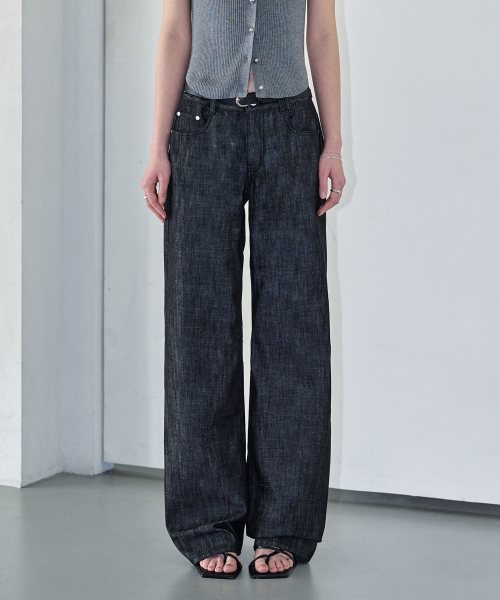 [린넨라이크]Signature Low Rise Wide Jeans DCWPT004CPBlack