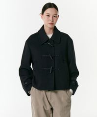 우먼즈 울 블렌드 더플 쇼트 코트 [블랙]