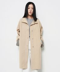 콘트라스트 체크 트렌치 코트 (베이지/차콜)